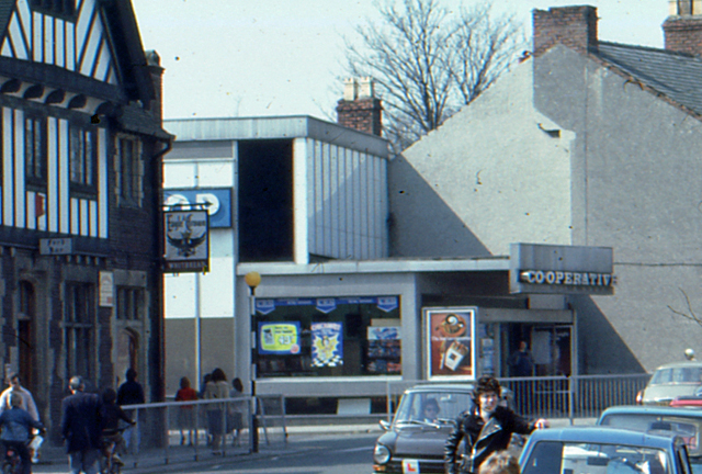 The Co-op Grocers had previously been located next to the Eagle and Crown in Rake Lane, where the Eagle and Crowns car park is now. The new supermarket closed in the 1990s and the building was bought by Ethel Austin who remained until they went into liquidation in 2010, the building has now been empty for several years.