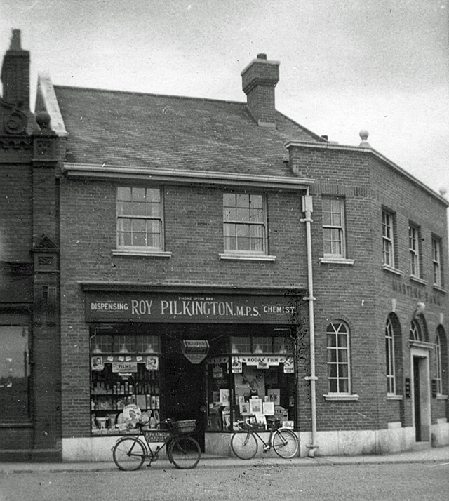 The name of the bank was shortened to Martins Bank in 1928. The row of three cottages was demolished and a new building was constructed for the bank, this originally included a shop fronting on to Ford Road, the shop was taken by Pilkington's Chemist.