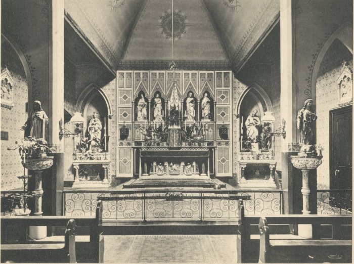 The Convent Chapel, which was named 'Our Lady of the Sacred Heart and St Joseph', was designed in the Gothic Style. The 'architect' of the chapel, and the corridors leading to it, was M. Victoire Dupont, sister of M. Clotilde Dupont who was first Superior of Upton.