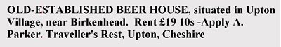 Despite the advert describing it as "Old Established", it's not certain when the Traveller's Rest was first established. The earliest reference is in the 1879 electoral register in which Edward Jones is listed as beerhouse keeper. In 1884 John Mellor was the beerhouse keeper and was summoned on 12th April of that year for selling alcohol in prohibited hours.