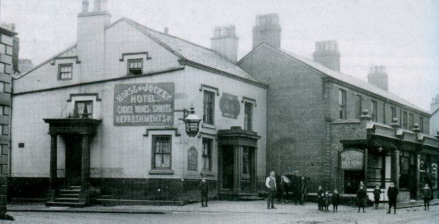 The Horse and Jockey was built on the opposite corner of Rake Lane about 1850. It was built on a site previously occupied by an 'L' shaped block of cottages. The first victualler of the Horse and Jockey was William Mullineux, so it is likely that the Horse and Groom closed when the new pub opened.