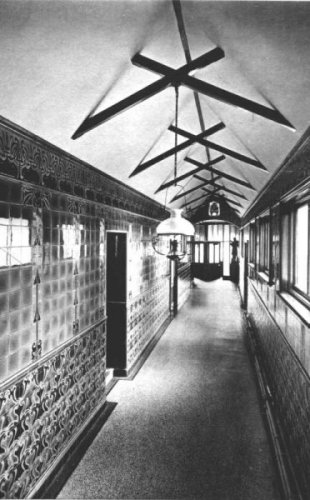 A second tiled passage runs from the senior study to the Novitiate building, past the Recreation Rooms room.